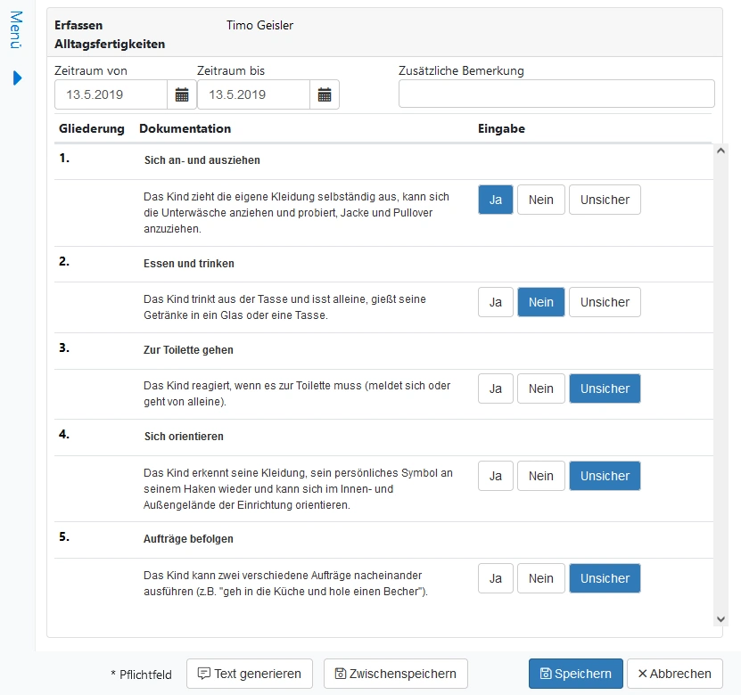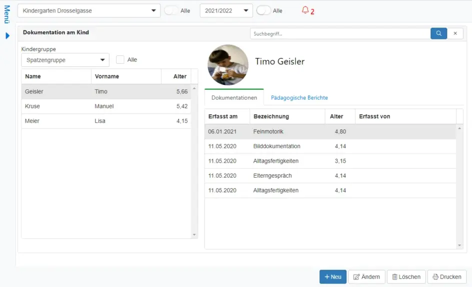 - Hinterlegung unterschiedlicher Dokumentationen je Kind